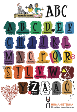 Vi ställer ut och skänker böcker och säljer Humanisternas gudlösa ABC-bok.